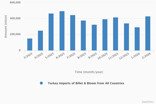 В феврале этого года импорт заготовок и блюмов в Турцию составил 429 6...