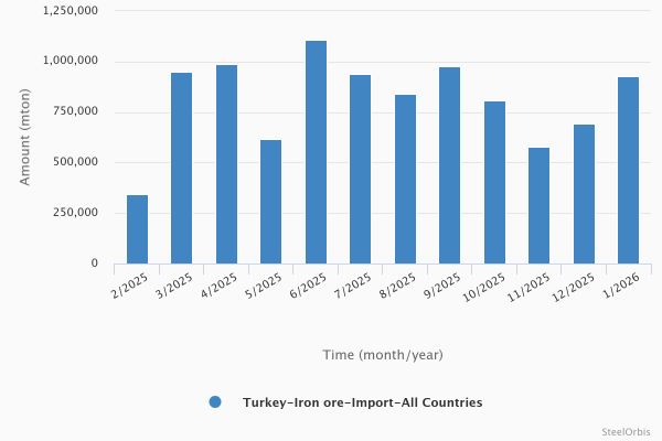 В январе этого года объем импорта железной руды в Турцию увеличился на...