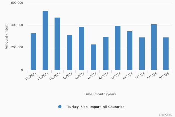 В сентябре этого года импорт слябов в Турцию составил 294 309 метричес...