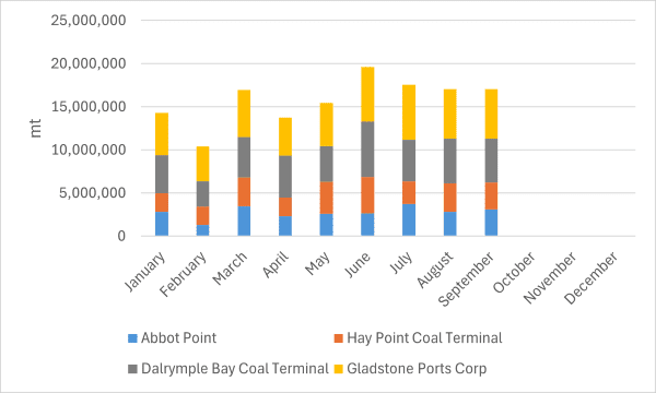 В сентябре этого года экспорт угля из австралийских портов Хей -Пойнт,...