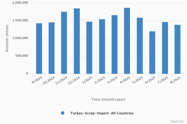 В августе этого года объем импорта лома в Турцию сократился на 29,1 пр...
