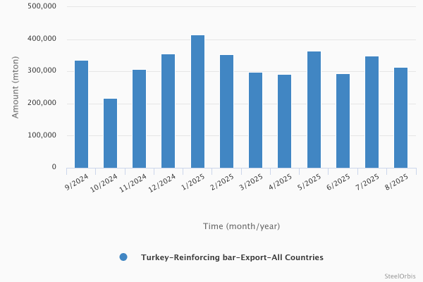 В августе этого года объем экспорта арматуры из Турции увеличился на 3...