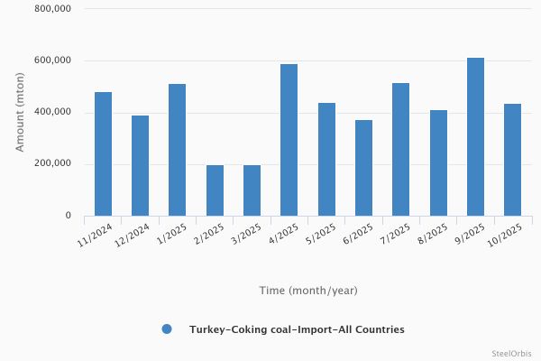 В октябре этого года импорт коксующегося угля в Турцию составил 436 62...