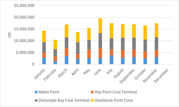 В ноябре этого года экспорт угля из австралийских портов Хей—Пойнт, уг...