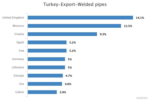 Экспорт сварных труб из Турции – последние 12 месяцев