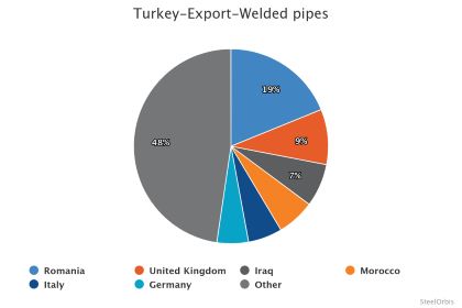 За первые девять месяцев года экспорт сварных труб из Турции составил 1,55 миллиона тонн, увеличившись на 0,6 процента, тогда как стоимость этого экспорта снизилась на 6,6 процента до $1,34 миллиарда в обоих случаях в годовом исчислении.