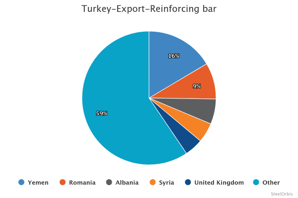 В первые восемь месяцев этого года Турция экспортировала 440 855 тонн арматуры в Йемен, что на 7,3% больше в годовом исчислении, а Йемен занял первое место как Турция ведущее направление экспорта арматуры, опередив Румынию, которая получила 235 104 тонн, что на 26,3% больше в указанный период. Ro