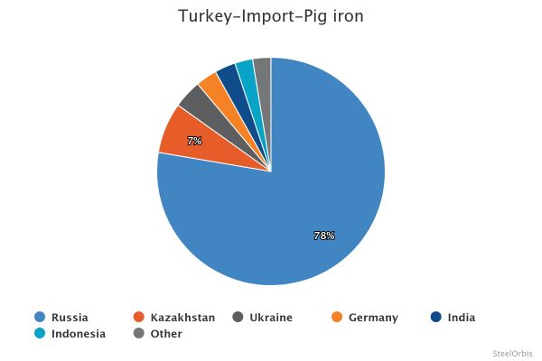 В данный период крупнейшим источником импорта чугуна в Турцию была Россия, которая поставила 1,45 млн тонн, увеличившись на 108,7% в годовом исчислении. за ним следуют Казахстан с 133 803 метрическими тоннами, что на 14,7 процента меньше, и Украина с 75 386 метрическими тоннами, что на 4,1 процента больше, чем в прошлом году.